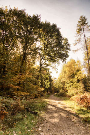 English woodland scene at the start of autumn Vintage Retro Filter.