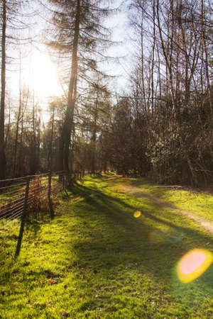 Low sun through trees in english woods