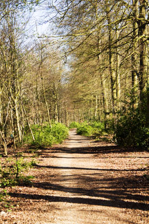 Gravel path between the trees inside New Forest, a famous National Park in Dorset, UK.