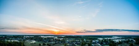 Dawn above the village from a height