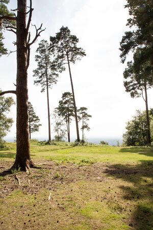 trees in a green field taken in the surrey countryside in england