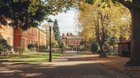 A view of a beautiful English country house in the autumn time.