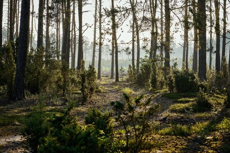 Evening pine forest - Green forest beautiful nature