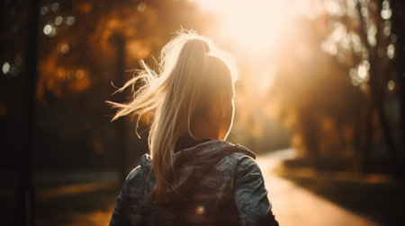 Girl jogging in the park on a sunny morning. Generative AI