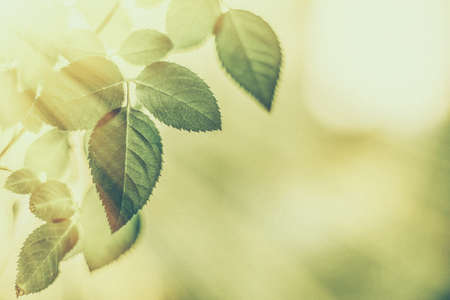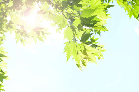 Close Up green leaf under sunlight in the garden. Natural background with copy space.