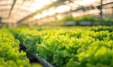 a professional hydroponic farm, showcasing vibrant green lettuce leaves flourishing