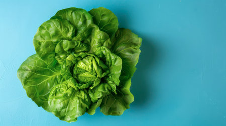 Bright green lettuce with ruffled leaves stands out against a vivid blue background, emphasizing freshness and quality ideal for salads or cooking.