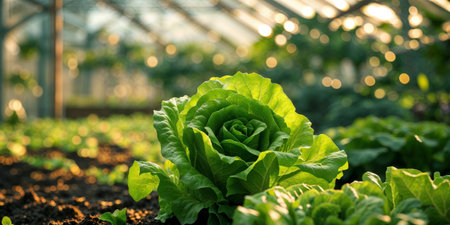 Lush Greenhouse Lettuces: Vibrant Organic Vegetables