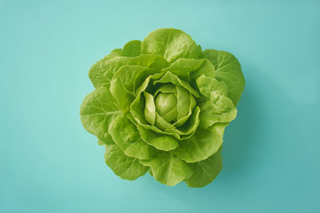 Delicate green lettuce leaves, arranged in a pleasing pattern, create a visually appealing and organic design on a light green background. The image is reminiscent of a still life, emphasizing the beauty and texture of the fresh produce.