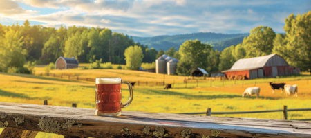 Brews & Views, Craft Beer Mug Set in Scenic Farm Landscape