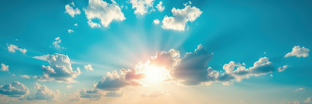Radiant Sunlight Filtering Through Billowy Clouds Against an Azure Blue Sky on a Serene Summer Day