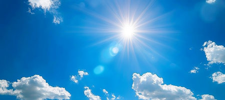 A vibrant image of the sun in a blue sky with clouds, perfect for various uses.