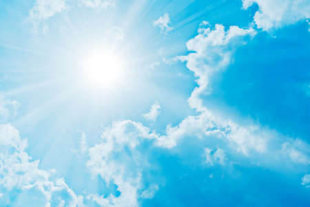 Blue sky background with sun and clouds