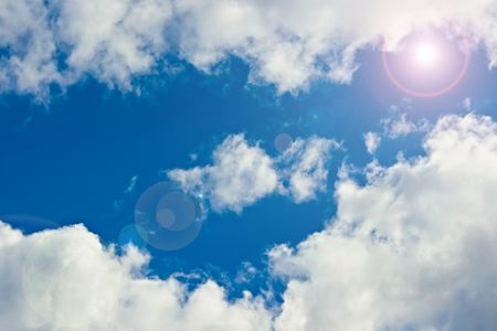 Blue Sky with Sun and Clouds