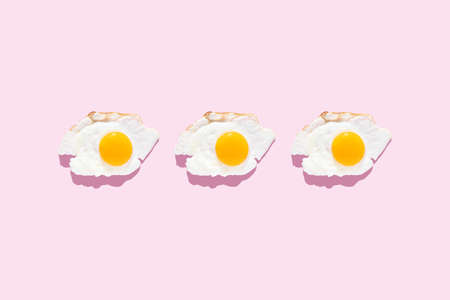 Fried eggs on a light pink background. Minimalism, top view. Breakfast concept, fried food.