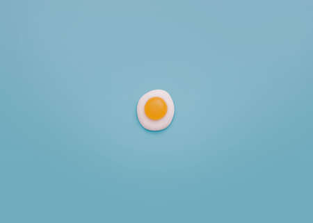 Egg. Top view photo in minimal style. Small omelet on light blue background. Design template with copy space