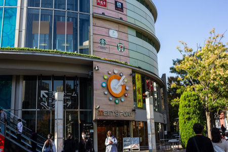 Tokyo, Japan, November 2, 2023: People outside MEeTS PORT in a shopping district