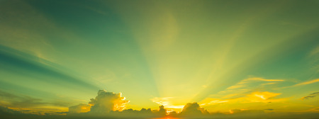 Gorgeous panorama scenic of the sunrise or sunset with sunlight and cloud on the orange sky