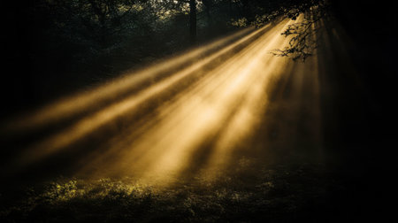 Glowing beams of sunlight illuminating a pitch-black background, showcasing the beauty and intensity of natural light