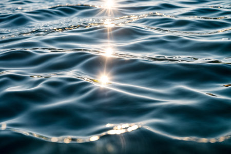 A tranquil scene showcasing gentle waves on a water surface with glimmering sunlight creating a captivating and serene atmosphere perfect for relaxation and inspiration.