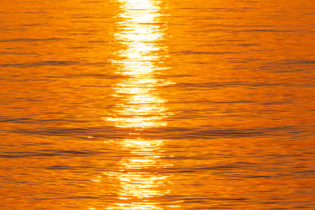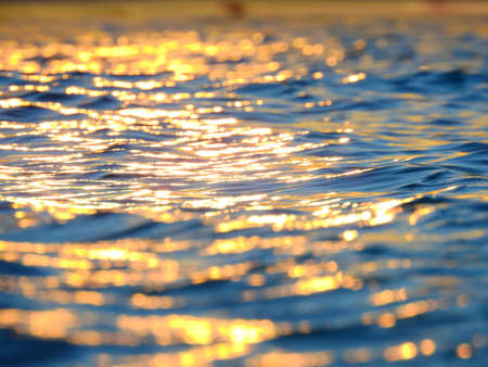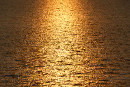 Sea water surface with golden glowing sun reflections. Abstract nature background.