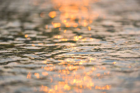 Abstract sunlight reflective on water background, Lights bokeh on water surface at sunset nature summer or spring ocean sea