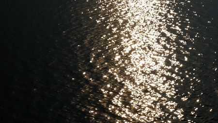 Gold sunlight reflecting in glittering sea. sparkling in water