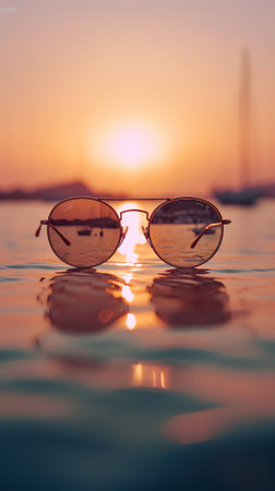 The image captures the serene beauty of a sunset reflecting on water, creating mesmerizing light patterns that evoke feelings of peace and relaxation.
