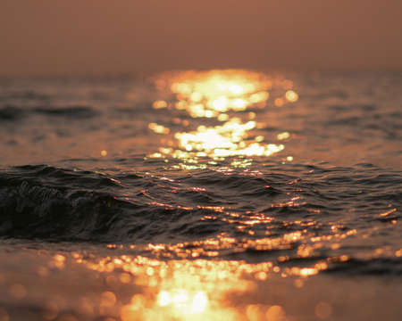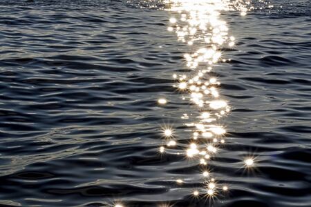 Glare of the setting sun's rays on sea water close-up. High quality photo