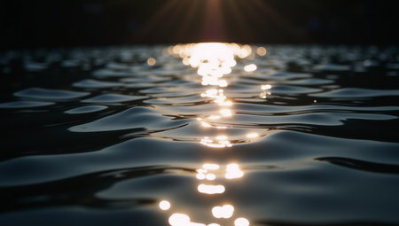 reflection of sparkling light on the waves of a lake, created with generative ai