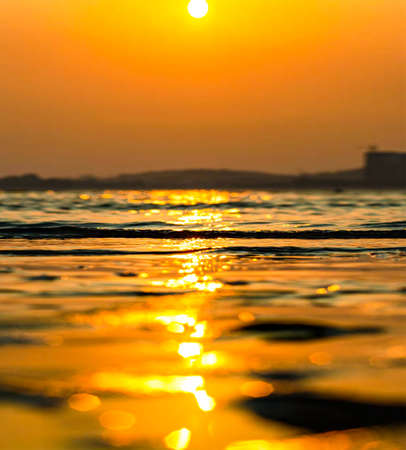 Light reflection on the sea water during sunset in the Mediterranean Beach near Athens Greece July 9th 2021