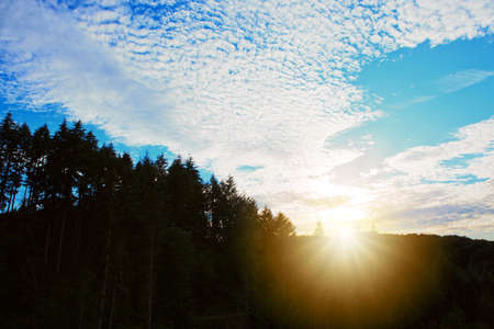 Sunset over the forest. Beautiful sunset over the forest. Landscape.