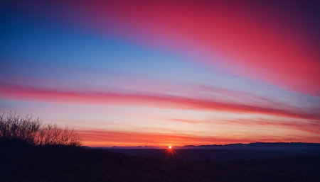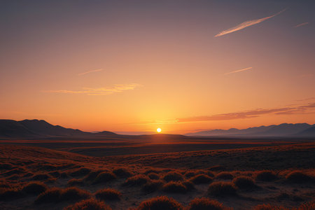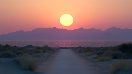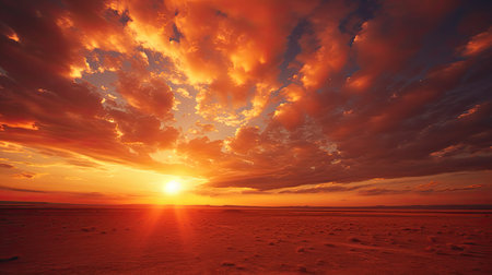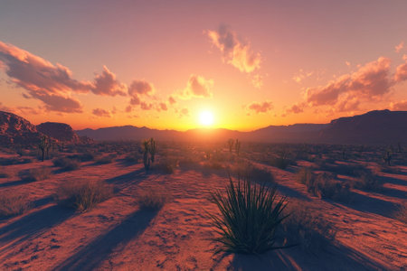 Experience the beauty of nature with this stunning sunset over a tranquil desert landscape. The vivid colors and serene atmosphere create a perfect outdoor escape.