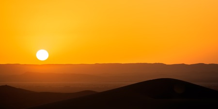 Sunset over the Sahara desert in Merzouga, Morocco
