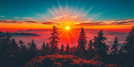 Vibrant sunrise over a mountain range.