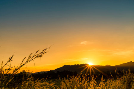 Beautiful sunrise over the mountain range at the west of thailand