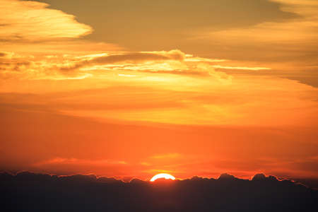 Beautiful orange sky evening beauty and Clouds at sunset , dawn, the rays of the sun break through the clouds. Natural background