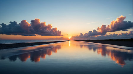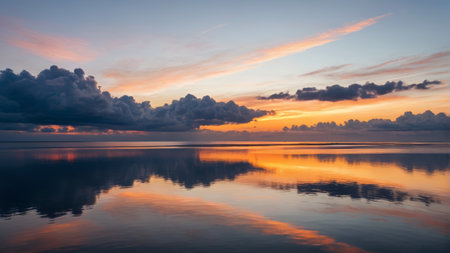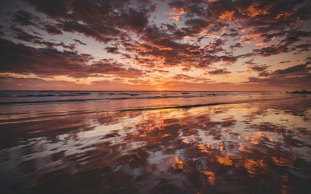 beautiful sunset over the sea with clouds reflected on the water surface