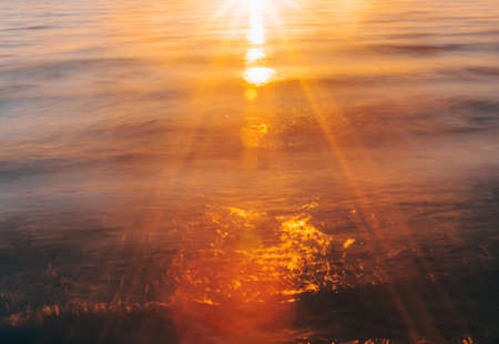 Sunset over the sea with reflection in water. Abstract background.