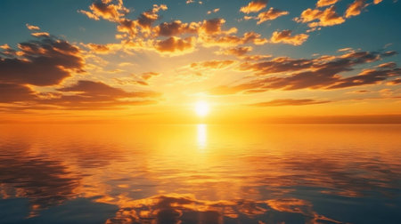Experience the serene beauty of a breathtaking sunset over calm water, showcasing vibrant colors that reflect beautifully across the liquid surface.