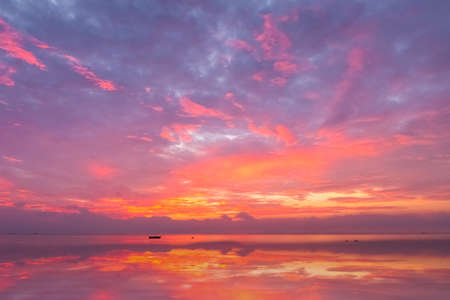 Beautiful sunset on the beach with reflection in water, Thailand.