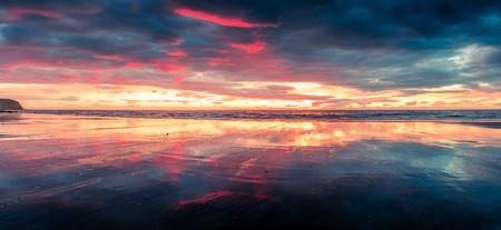 Sunset on the beach in Bali, Indonesia. Panoramic view.