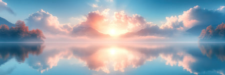Breathtaking Sunrise Illuminates the Peaceful Lake, Casting Beautiful Reflections on Tranquil Waters