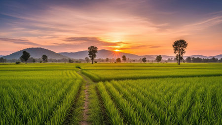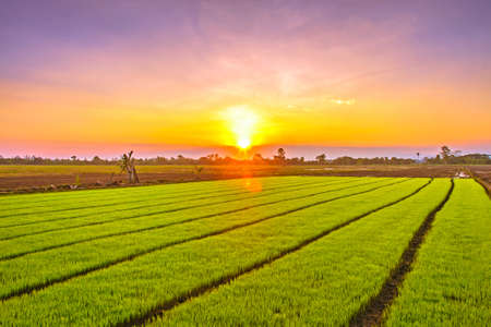 sunset over rice field in countryside of Thailand, beautiful photo digital picture