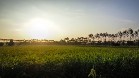 Acreage for rice farming in sunset