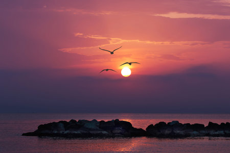 Welcoming the sunrise on the Black Sea coast early in the morning