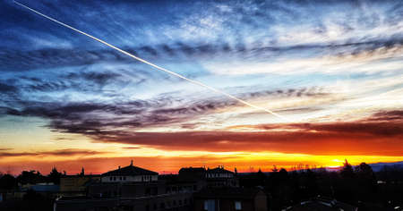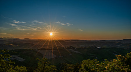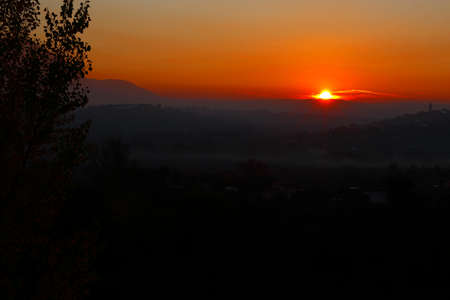 Sunset over the Bibbiano Reggio Emilia Emilian hills, Italy. High quality photo