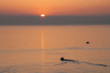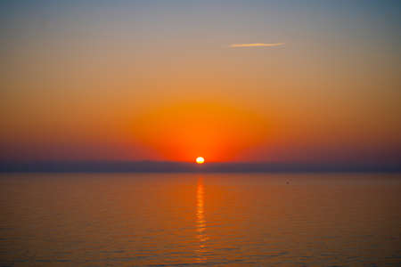 Scenic sunset or sunrise over sea surface. Natural scenery, beautiful landscape