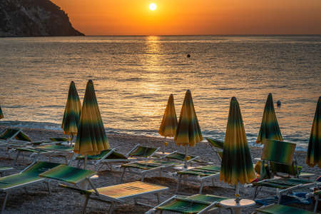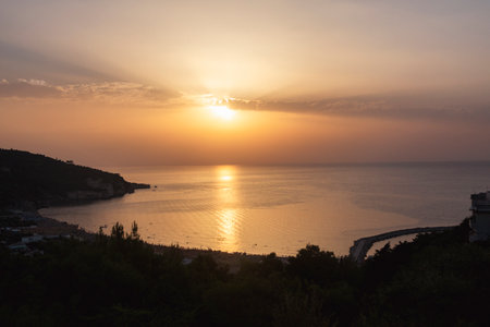 Sunset on the Mediterranean Sea in the town of Ercolano at the foot of the volcano Vesuvius, Italy