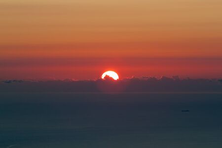 Beautiful sunrise above the clouds and sun. Colorful sky.